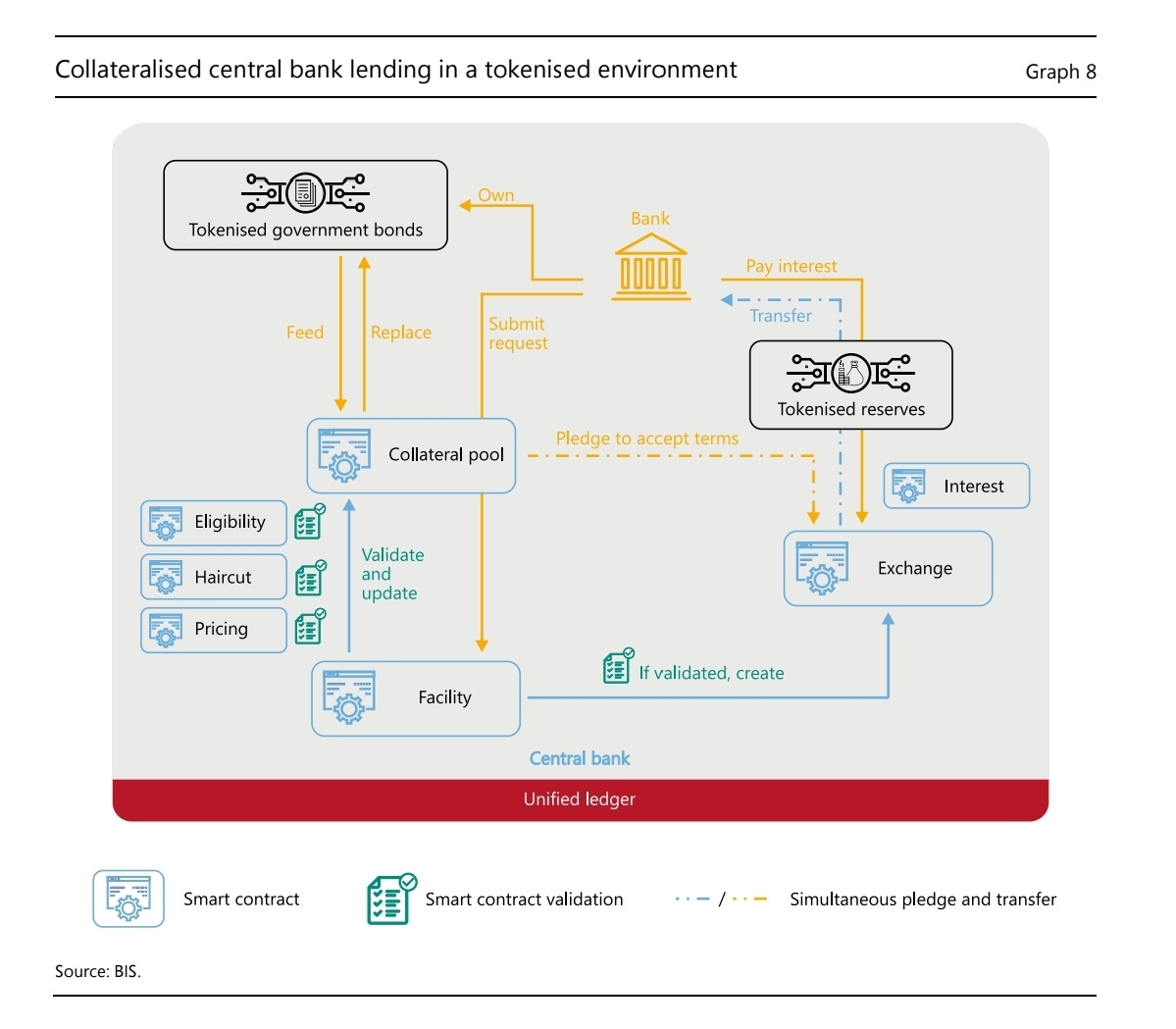 Graph 8 visually breaks down this process using a tokenised repo transaction as an example. Here’s how it works:
