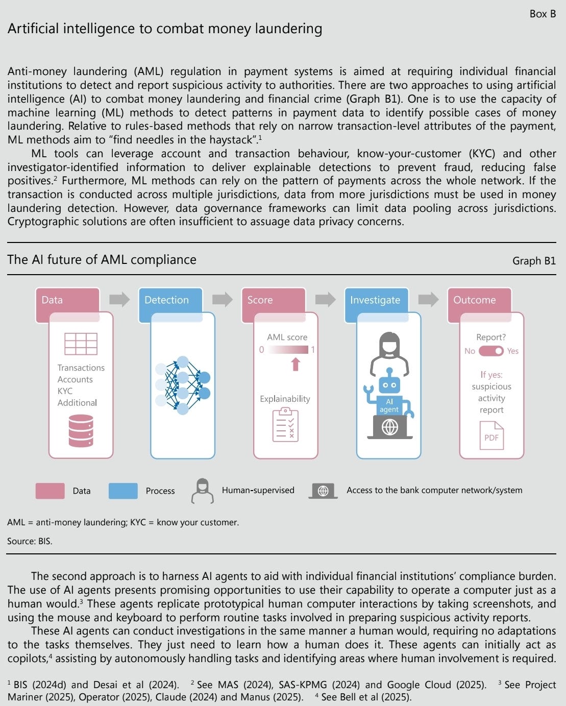 Tech can help, but only so much: Advances in AI and data integration (e.g., machine learning to reduce false positives and enhance detection) can aid in fighting financial crime. But as the BIS notes, even with these tools, the bearer nature of stablecoins means that full integrity is hard to guarantee at scale.