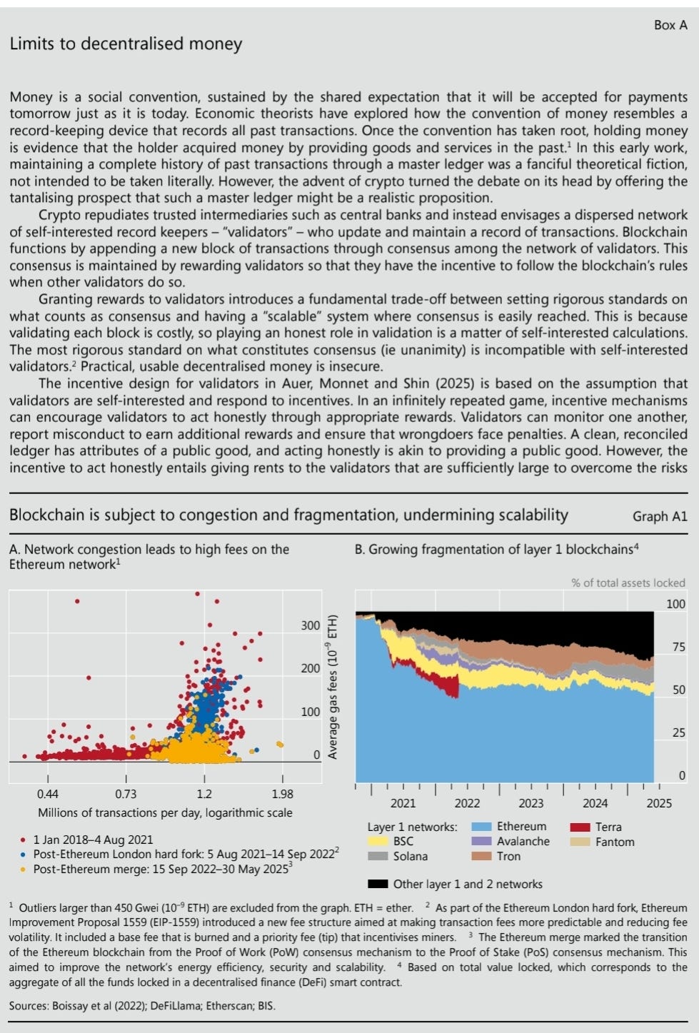 The turn of the article starts with highlighting that money needs to remain ‘information-insensitive' meaning that due diligence is not required, implying that there is a layer of trust in the monetary value. This is where the three tests of money comes into play. 1) Singleness. 2) Elasticity. 3) Integrity. These core tests underpin the coordination in the current monetary system, without it, trust would fail and the monetary system would become uunmoored. So inorder to test its ‘Singleness’ test two and three come into play. Elasticity, the system must expand and contract money supply to meet demand inturn avoiding liquidity crunches and finally, Integrity, Money must resist fraud and illicit use adding security and compliance. Here’s the critical insight: These tests are interdependent. Singleness (Test 1) depends on Elasticity and Integrity (Tests 2 & 3). Without elasticity, money shortages breed distrust in its value. Without integrity, fraud erodes universal acceptance. Lose one leg, the stool collapses – and money becomes "unmoored.’’